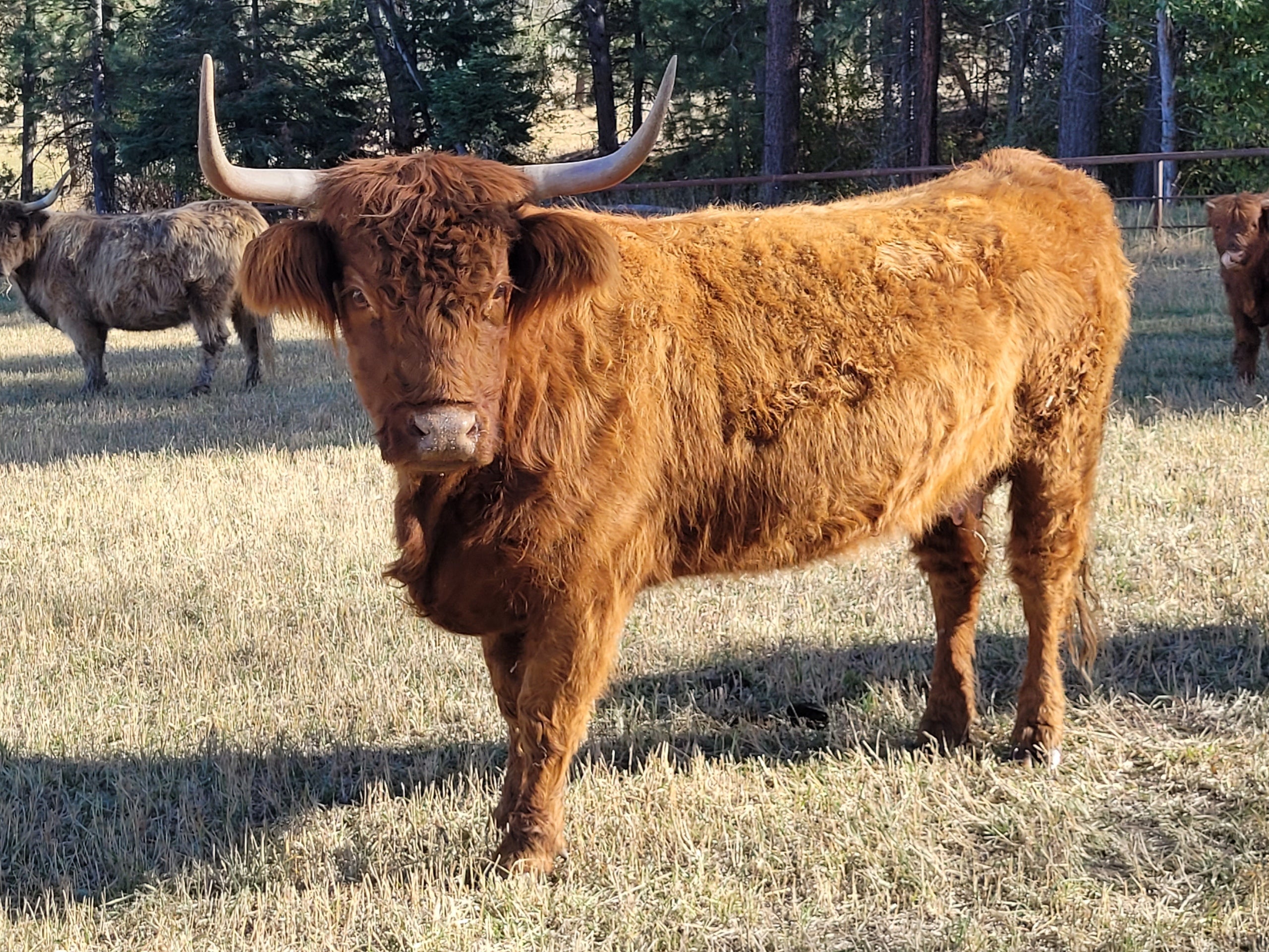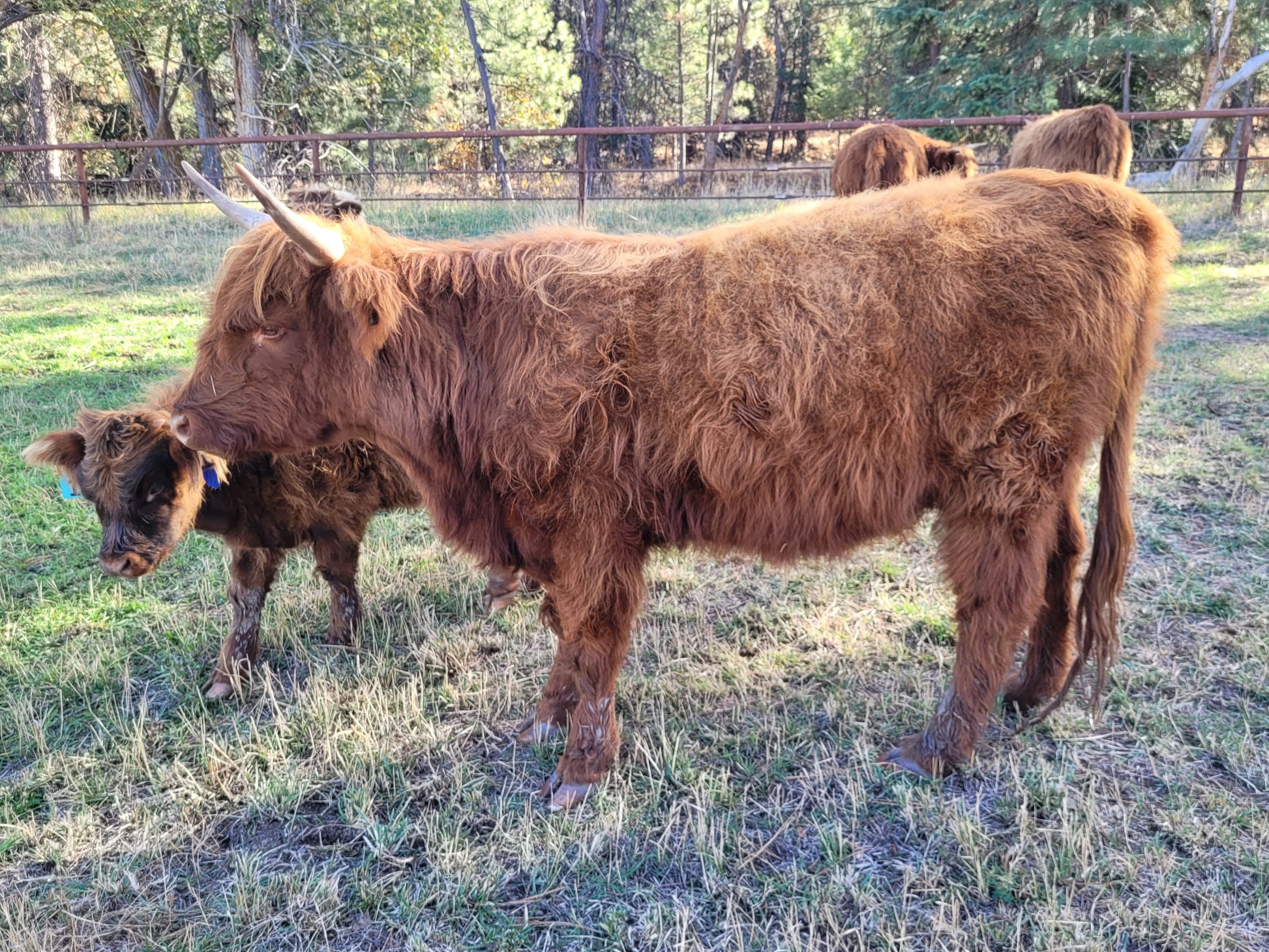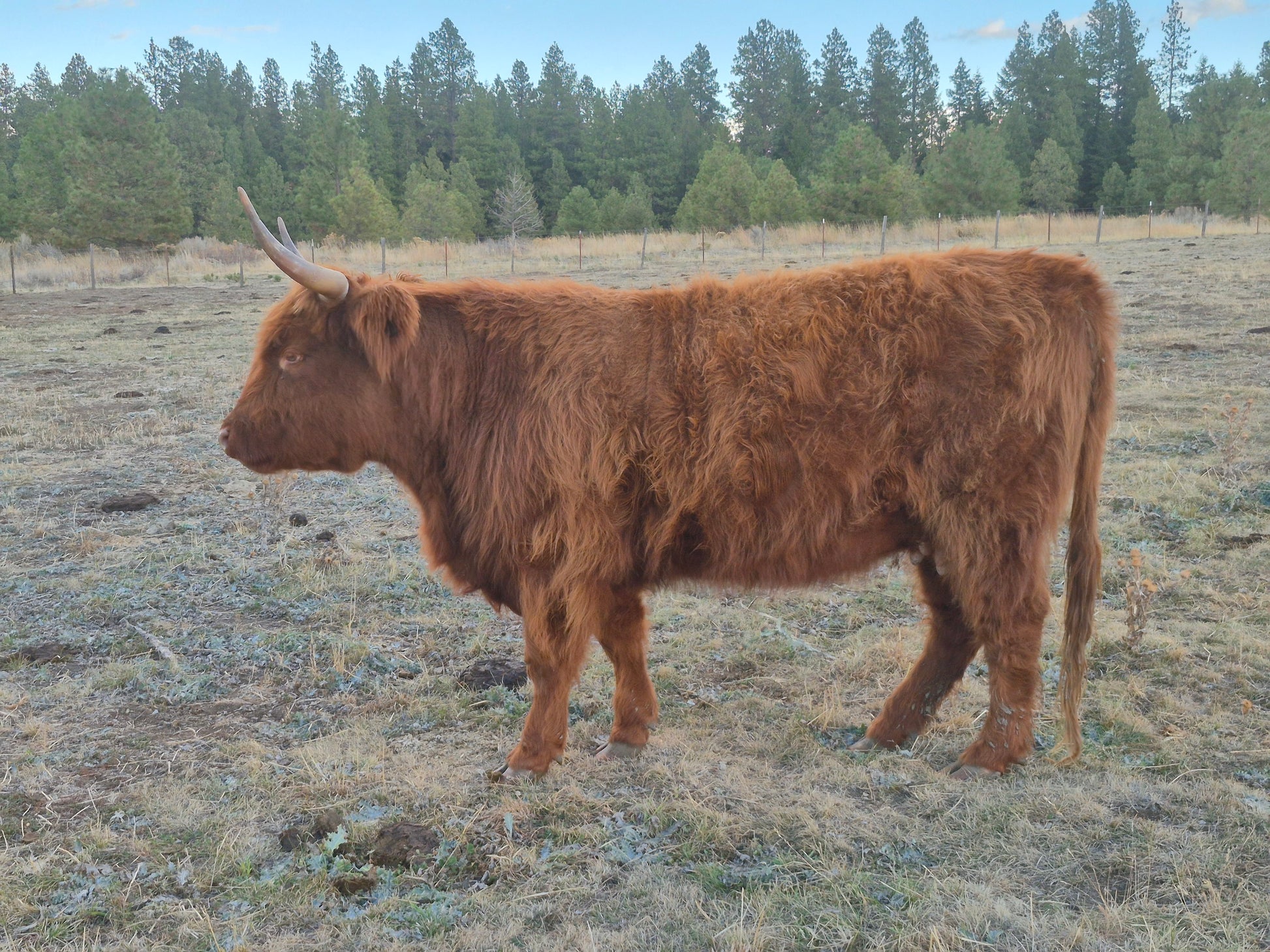 An unregistered, red cow, Teddita is super mellow and easy to work. She takes after her sire in looks and disposition. Teddita is confirmed bread (sex unknown), due 04/01/25. We have only chosen to sell her because she is unregistered.