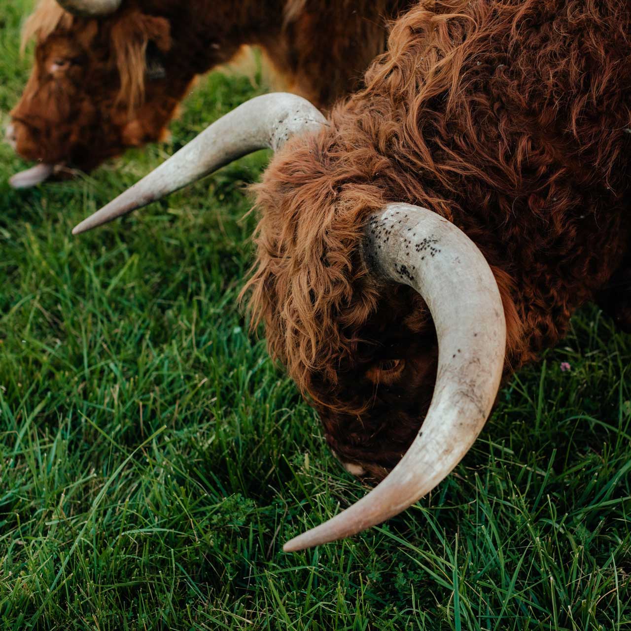 Scottish Highland skulls - cow, steer, and bull. Horns measure 26”-45” in width. All skulls cleaned by Dermestid beetles and bleached. Horns polished.